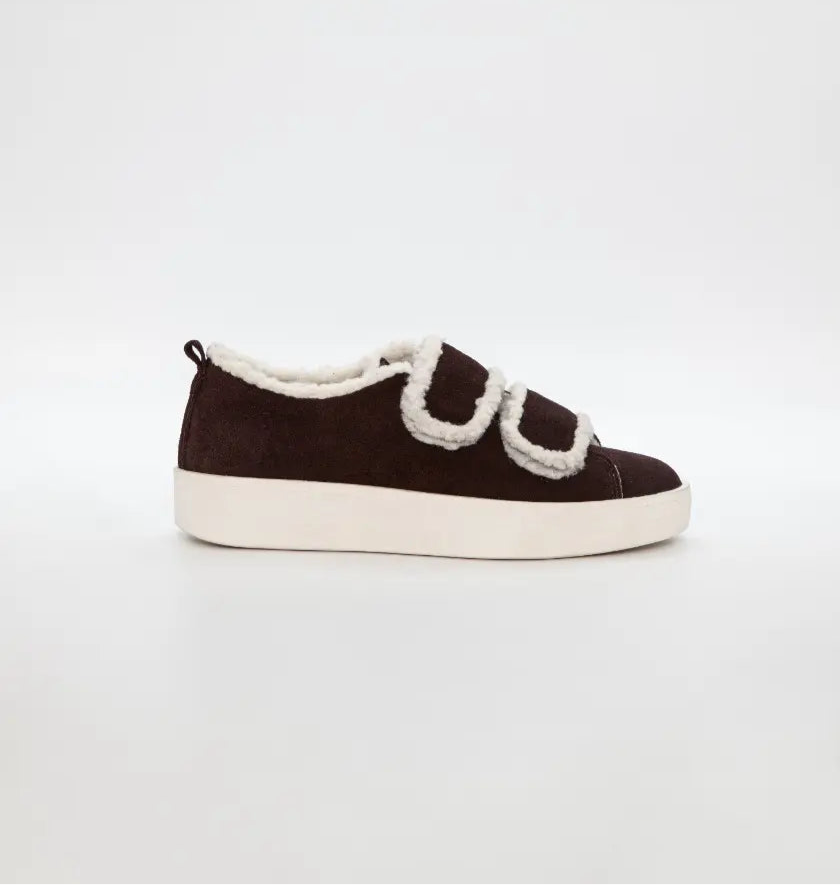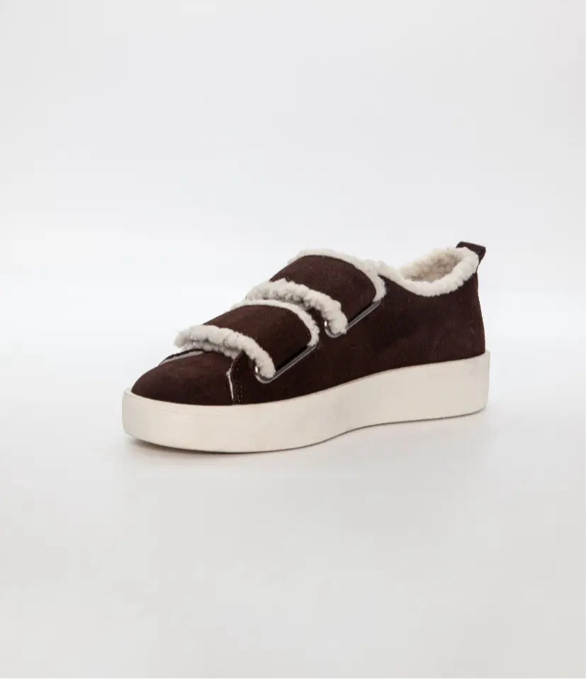 Leuca Uno – varma sneakers i mocka med fuskpäls och kardborre